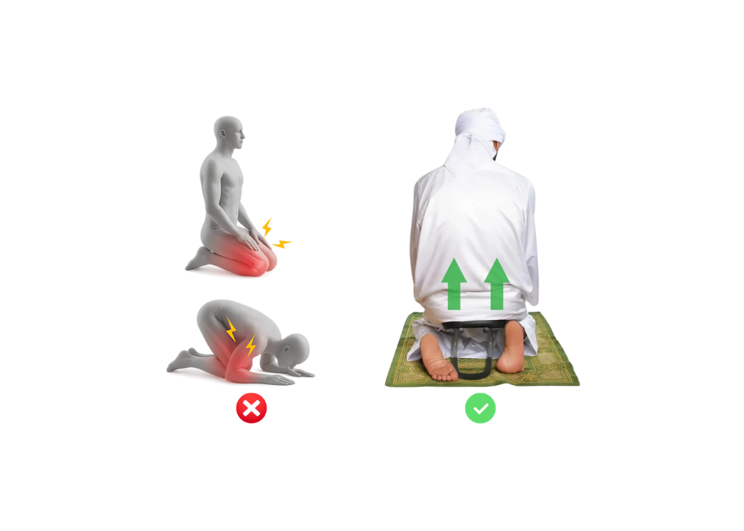 Not at all. SalahSeat™ is designed for anyone with pain, limited mobility, or special conditions — including pregnant women, injury recovery, arthritis, and new Muslims still building up stamina for full prayer postures.