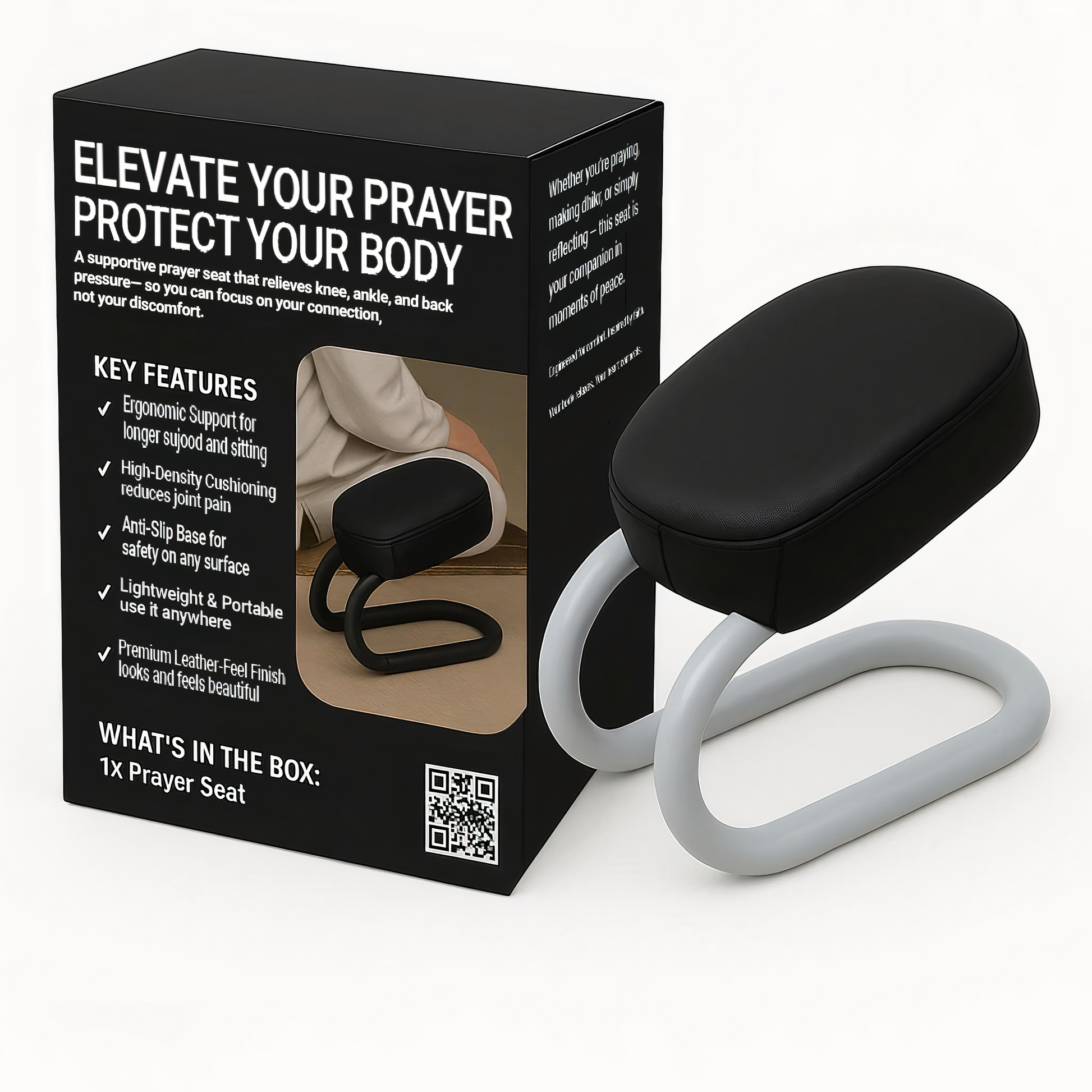 SalahSeat™ is more than just a chair — it’s a tool to help you reconnect with your prayer, your comfort, and your Deen. Every detail is designed for Muslims who value both spiritual and physical well-being. From its Sharia-compliant structure to its ergonomic design, SalahSeat™ helps you pray in peace, without pain or pressure.